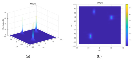- Rao, B.D.; Hari, K.V.S. Performance analysis of root-MUSIC. IEEE Trans. Acoust. Speech Signal Process. 1989, 37, 1939–1949. [Google Scholar] [CrossRef]