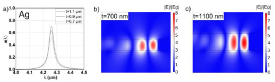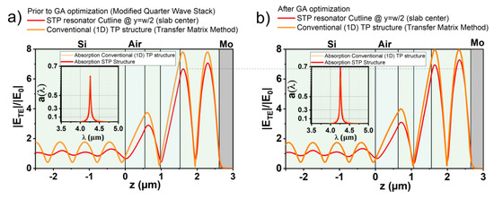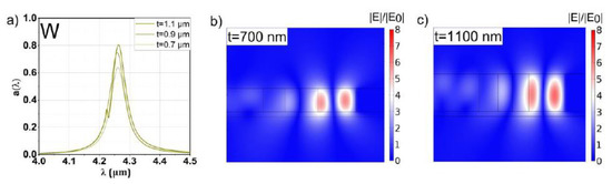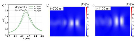 - Puhringer, G.; Jakoby, B. Modeling of a CMOS-Compatible Slab Tamm Plasmon Absorber using N-Type Silicon. In Proceedings of the 2019 IEEE Sensors Applications Symposium (SAS), Montreal, QC, Canada, 27–30 October 2019. [Google Scholar]