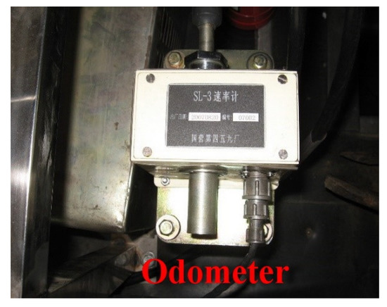 In order to verify the proposed adaptive federated IMM filtering method in the AUV integrated navigation system, an integrated navigation experiment in a real system was conducted. The vehicle experiment was carried out outdoors in Beijing, China. The approximate location was east longitude 116° and north latitude 39°. To simulate the output of DVL and the output of TAN in the AUV integrated navigation system, an odometer and a GNSS receiver were adopted. The odometer provided measurement values of velocities and the GNSS receiver provided measurement values of positions, respectively, in the integrated navigation experiment. Figure 3 shows the experimental vehicle platform that includes the SINS, GNSS receiver, odometer, navigation computer, power source, and communication lines. The SINS and the odometer used in the experiments are shown in Figure 4 and Figure 5, respectively.