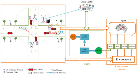 - To overcome challenges caused by the dynamics and uncertainty of on-board resource utilization status in a VCC, a perception-exploitation computation offloading scheme is proposed. In the perception stage, a Long Short-Term Memory (LSTM) model-based resource discovery mechanism is designed to predict the on-board computation resource utilization status in a VCC.