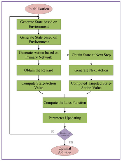 The resource allocation for computation offloading generally involve spectrum resource allocation and computation resource allocation. A multitude of studies have devoted to minimizing the total network cost for energy and delay, as well as maximizing the system profit, with the conventional optimization methods, like convex optimization, and game theory, as well as some AI-based machine learning algorithms. Specifically, to maximize the sum offloading rate, a hybrid computation offloading scheme jointly considering the resource allocation integrating task distribution, subchannel assignment and power allocation is proposed in Reference [31], which are solved by subproblems decompose and iterative solution algorithm. To minimize the weighted-sum latency of all mobile devices, Reference [32] formulates a joint communication and computation resource allocation problem to minimize all mobile devices’ weighted-sum latency. Reference [9] proposes a vehicle-assisted offloading scheme for UEs to reduce the computation offloading delay, in which a semi-Markov process is formulated and solve by Q-learning and DRL algorithm. Reference [33] investigates the joint communication and computing resources allocation problems for computation offloading in a vehicular edge computing system. To reduce the long-term expected costs of power and time, Reference [16] discusses the VCC resource allocation problem. In the above works, diverse metrics, such as transmitting rate, delay, energy efficiency, etc., have been considered. In our work, due to the relatively sufficient energy supply in vehicular network, we believe that energy is not the key factor restricting the computation offloading’s performance in a VCN [34]. In addition, considering the requirements for quality of service (QoS) in vehicular network, our optimization objective is defined as maximizing utility function, in view of the powerful data processing ability in complex circumstance and high-effective learning capability from the environment. In this paper, a Deep Q-learning Network algorithm (DQN) is utilized to solve the optimization problems for resource allocation.