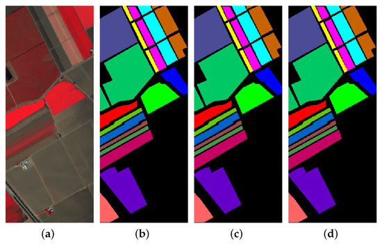 - Salinas Scene (SA)—This dataset was collected over Salinas Valley, California, in 1998 using the AVRIS sensor. The spatial dimension is pixels and the spectral information is encoded in 224 bands with a wavelength in the range of 360 to 2500 nm. Similar to IP, 20 spectral bands due to water absorption are discarded. The ground truth contains 16 different classes from vegetables, bare soils, and vineyard fields.