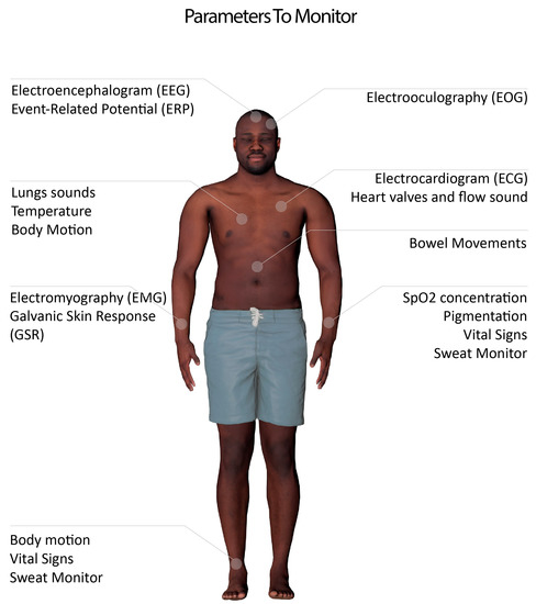 Other types of bio-signals are emerging as well. Chemical and electrochemical signals are the measure of the chemical composition of bio-fluids [52], such as sweat. Sweat analysis can be done with wearable and non-invasive methods and allow for easy tracking of bio-markers in their composition for the detection of genetic conditions and other kinds of diseases [53]. For more information on types of bioelectronics signals for biomonitoring, or HMIs, one can consult related review articles [54,55].