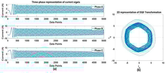 Figure 9 shows the signal representation of (a) three-phase, and (b) 2D, DQ transformation.