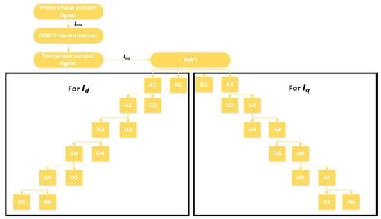 After data acquisition and DQ0 transformation, we implemented DWT on components