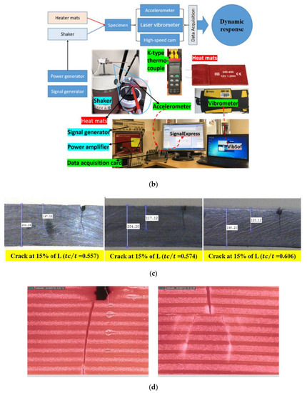 Therefore, the fast and accurate inspection of the severity of the damage in the component under thermo-mechanical loads is a critical and very challenging task. A variety of non-destructive techniques are used in the industry to inspect structural assets for damage detection and remedial action. A great deal of encouraging research is also taking place around using simple vibration tests and measurements of structural dynamic properties to infer the correct location and severity of damage in engineering structures [5,6,7,8,9,10,11,12,13,14,15,16]. The dynamic response of a structure can be used to measure the elastic properties of the constituent material [17]. Often, a combination of modal parameters like natural frequency and tip amplitude is used to model the relationship between thermomechanical loads and crack propagation, and they showed good correlation [18,19]. However, adequate predictive capability of fatigue crack propagation under complex thermomechanical loads remains a challenge for the field.