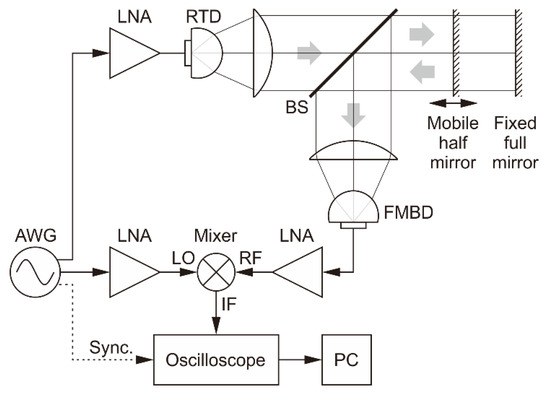 17. Ito, H.; Ishibashi, T. Low-noise heterodyne detection of terahertz waves at room temperature using zero-biased Fermi-level managed barrier diode. Electron. Lett. 2018, 54, 1080–1082. [Google Scholar] [CrossRef]