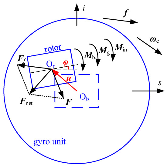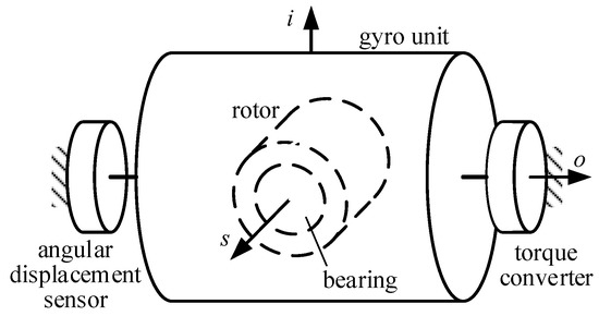 Gas-dynamic bearing gyroscopes have gained wide acceptance with high precision. Their performance determines the precision of the inertial navigation system to a large extent [1,2,3]. They have been designed with gas-dynamic bearings to support the rotor. As gases are less viscous than liquid, and the environmental temperature has only a little impact on it, the rotational speed of gas-dynamic bearing gyroscopes could reach 10,000~100,000 rotations per minute (rpm) [4]. Moreover, the high speed could greatly reduce the gyro error torque without increasing weight [5,6]. However, the flexibility of gas-dynamic bearings may lead to the rotor-eccentric motion, with the action of the specific force (the difference between acceleration vector and gravity acceleration vector) and the carrier angular velocity. Moreover, an error will occur as a result of the eccentricity [7]. It is challenging to reveal the mechanism of error transfer because of the nonlinear elasticity of the gas-dynamic bearings and the complex five-degrees-of-freedom model (5-DOF) motion of the rotor. The key to correct the error is to predict the interference torque through rotor dynamics research, based on the theory described in the previous studies [7,8].