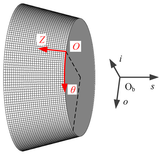 where Ω is the conical surface of the bearings, x = (i, o, s) is the position vector on the conical surface, obtained by the following relationship between OθZ and Obios: