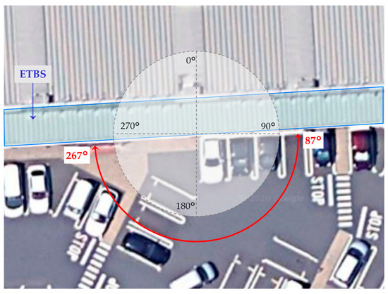where is the entry angle threshold and is the entry angle with respect to half of the depth. The side opening orientation can be estimated by using a geographic information system or Google Maps. In the case of site-A, 87°–267° is the side opening orientation, as shown in Figure 9.