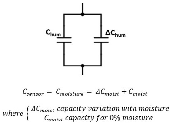 In response to these technological barriers, our innovation is based on the design of a new generation of affordable capacitive sensors compatible with deployment demands on a large scale. Section 2.2 presents an elementary sensor design and its optimization. Section 2.2.1 offers a modification of the shape factor of the electrodes to optimize measurement parameters. Section 2.4.3 describes the sensor’s electric model, while Section 2.5.2 presents the design of onboard electronics for the associated measurement. Finally, Section 2.6 outlines the results of on-site performance tests on actual agricultural operations.