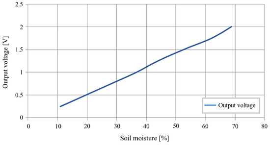 First, laboratory tests are carried out to validate the sensor’s behavior when measuring moisture and salinity. Figure 31 shows the sensor’s output voltage responding to the soil moisture. These measurements present a variance of 0.6 V/%, standard deviation of 0.36 V/%, and linearity of 93.33%.