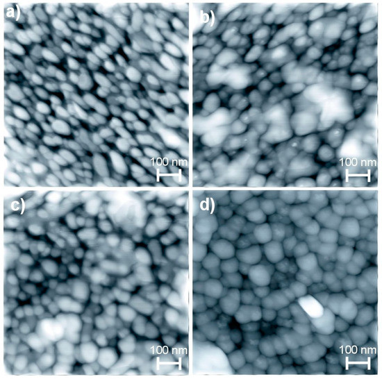 While the thickness of the films deposited by USP is very slightly affected by the substrate temperature, the films deposited by dip coating showed an increase in thickness of approximately 15 to 20 nm, with each deposited layer as shown in Table 3.