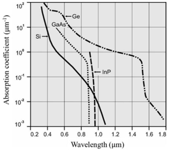 Absorption coefficients for Si, Ge, GaAs and InP []. The original date is assembled in [].