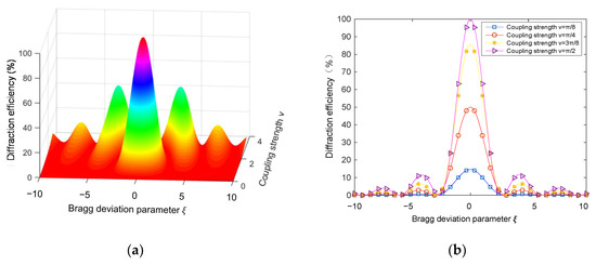 Figure 2b shows the curves of hologram diffraction efficiency with varying Bragg deviation parameter
