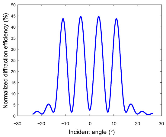 is increased, the diffraction efficiency can still exhibit small fluctuations. However, the peak values of the diffraction efficiency curve can decrease gradually.