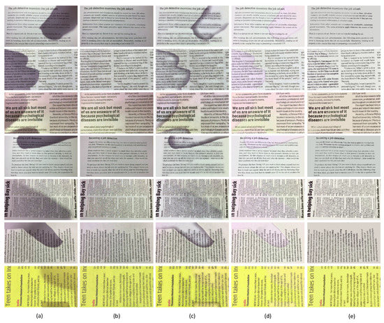 - Oliveira, D.M.; Lins, R.D.; Silva, G.F. Shading removal of illustrated documents. In Proceedings of the International Conference on Image Analysis and Recognition, Aveiro, Portugal, 26–28 June 2013; pp. 308–317. [Google Scholar]