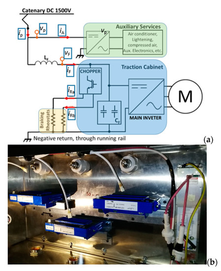 Figure 1 schematically shows the input stage of the train with highlighted measurement points. The pantograph voltage