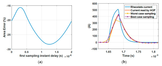 Figure 16b. In particular, the figure shows the position of the samples that provide the lowest and biggest deviation between the area underneath the actual current wave and the sampled signals.