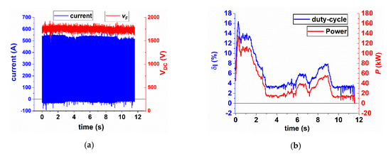 30]. The braking event lasts for about 10 s. The DC voltage at the input of the chopper is 1780 V on average (see