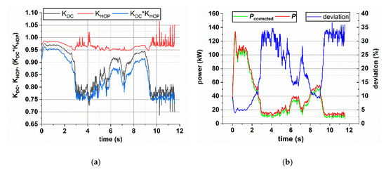 The proposed technique has been applied to a real dissipative braking event recorded on-board a metro vehicle. This braking event, during about 10 s, is characterized by a duty-cycle ranging from 5% to 14%; with the same time behavior, the power ranges from few tens of kilowatts to about 130 kW with an average value of about 60 kW. Under these conditions, the deviation between uncorrected and corrected power is about 20%. Such an error is relevant for proper energy flow analysis as in the design of on-board storage systems. This demonstrates the usefulness of the proposed methodology.