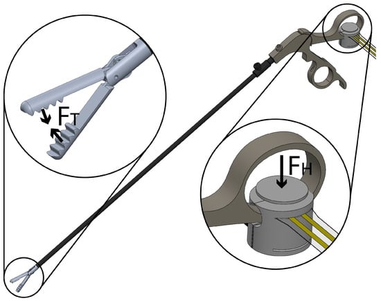 - van den Dobbelsteen, J.J.; Lee, R.A.; van Noorden, M.; Dankelman, J. Indirect measurement of pinch and pull forces at the shaft of laparoscopic graspers. Med. Biol. Eng. Comput. 2012, 50, 215–221. [Google Scholar] [CrossRef][Green Version]
