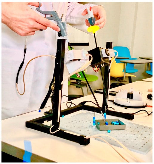 - Soriero, D.; Atzori, G.; Barra, F.; Pertile, D.; Massobrio, A.; Conti, L.; Gusmini, D.; Epis, L.; Gallo, M.; Banchini, F.; et al. Development and Validation of a Homemade, Low-Cost Laparoscopic Simulator for Resident Surgeons (LABOT). Int. J. Environ. Res. Public Health 2020, 17, 323. [Google Scholar] [CrossRef]