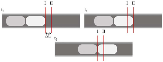 Figure 2. The sensors must be able to distinguish between the passing phases. For velocity and length measurements, two sensors on one capillary are required. The quotient of the separation between the sensors ΔL and the time difference t