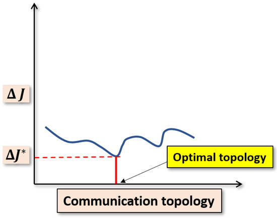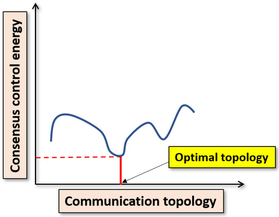 In the context of control energy about the consensus of MASs, it is important to note that the same consensus protocol can produce different control energies for the agents if the topology varies. Therefore, the control energy can be minimized with respect to the topologies. The topology corresponding to the minimum energy is addressed as the optimal topology (see Figure 4 for details). A similar problem has been addressed in [16,17,18]. In these papers, the Linear Quadratic Regulator (LQR) was used to obtain a complete graph for the homogeneous systems. A similar problem is presented in [19], where heterogeneous agents are considered. The optimal topology obtained is a star graph which shows the direct links between the leader and the followers. In [20], the authors presented the optimal topology problem and solved it using a Two-Dimensional Genetic Algorithm (2D-GA), which relaxes the requirement of direct connection among the leader and the followers.