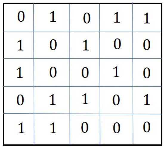 The optimization problem mentioned in the previous section cannot be solved by convensional GA. The solution to this problem can be obtained using a two-dimensional genetic algorithm. The chromosome of 2D-GA is a matrix which is appropriate to represent an adjacency matrix [20]. Therefore, in this paper, the adjacency matrix is considered as a chromosome. Depending on the application, the two-dimensional chromosome represents a different solution. For example, the time table or schedule is considered as a 2D chromosome in a flight scheduling problem in [32]. Also, it is used in the packing problem [33], which aims to obtain a high packing density. The two-dimensional chromosome representation is discussed in the following section.