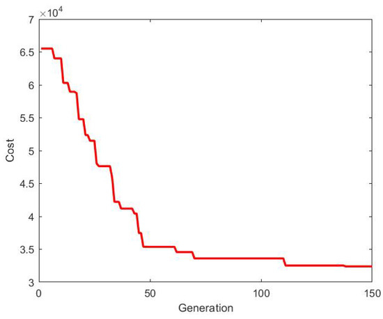 The existing topology in which the group of agents are connected is considered to be the optimal one [20]. The optimal topology is obtained using 2D-GA, as described in this paper. The cost (consensus control energy) generated is shown in Figure 13.