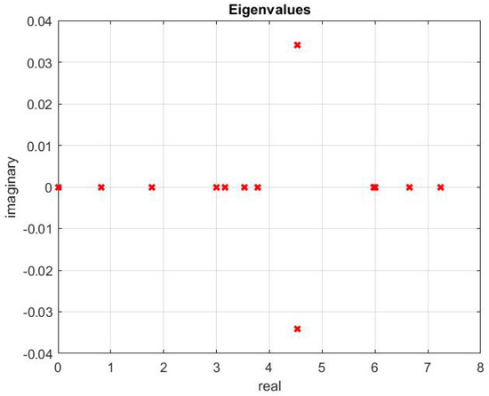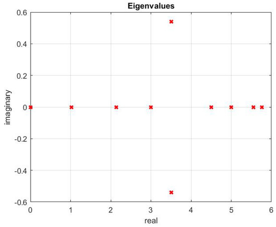 The optimal topology obtained is shown in Figure 14. This is the existing topology among the agents. The topology contains a spanning tree, which is evident from the eigenvalues shown in Figure 15. There is only one zero eigenvalue. Others have a positive real part.