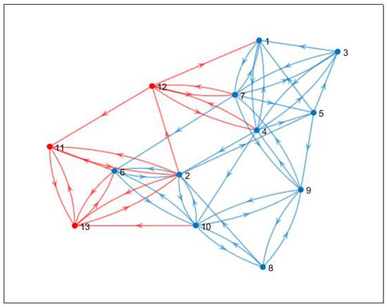 It can be observed that the additional cost is minimized over the generations, i.e., the consensus of all the agents (including the new agents) can be achieved by spending the minimum amount of additional control energy. The updated topology is shown in Figure 23. The agents 11–13 are added to the existing agents in the updated topology. It is important to note that the existing topology (Figure 16) is un changed.