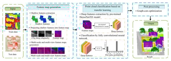 Figure 1 shows the overview of the proposed method. The whole procedure is composed of three parts: (1) feature map generation, (2) point cloud classification based on transfer learning, (3) post processing.