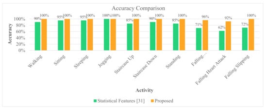 To solve this problem, activity recognition is shifting towards the deep learning-based techniques [,]. A Convolutional Neural Network (CNN) can automatically extract feature which is proposed in []. This study thus uses deep learning-based shallow CNN methodology which is an unsupervised approach and extracts local and statistical features. This is capable of extracting universal characteristics of sensor data []. In another study [], a 3-layer LSTM model achieves an accuracy of 97.4% which is based on layer wise LSTM and CNN models. In one study [], a low-cost Logistic Model Tree (LMT) is proposed for identify the time segment data. In one study [], a data driven approach has been proposed. In one study [], Probabilistic Neural Network and Fuzzy Cluster algorithm is proposed for the incremental learning ability but it reduces the required accuracy. In one study [], a special kind of deep neural network has been proposed which is a combination of convolutional layers and short-term memory (LSTM). With a few model parameters it can automatically extract features. In one study [], backward locking phenomenon is reduced and it is found that layer wise CNN with local loss exhibits good outcomes. It uses few numbers of parameters. However, if it uses higher parameters then it might exhibit some discrepancy. Ran Zhu et al. implemented a model that uses three different data sources i.e., data gathered from accelerometer, gyroscope and magnetometer. There were a total of 100 subjects who generated the sensor data. The machine learning-based approach was implemented on preprocessed data particularly Convolutional Neural Network (CNN). It is found that this study gained a rationally satisfactory result of 95.62% accuracy. Also, 96.29% accuracy was gained by the same research by using novel ensembles of CNN []. In one study [], the Stack AutoEncoder (SAE) and heuristic optimization algorithm-based artificial bee colony (ABC) were proposed. In one study [], series data are converted into images using computer vision methodology and employed a deep learning approach. To overcome the imbalance distribution of labeled data in semi-supervised learning the researchers proposed a semi-supervised deep Recurrent-Convolutional-Attention model []. In addition, in a study by [], it was interestingly found that an unsupervised learning technique is not capable to handle such situation. Mohammed et al. collected the activity data from human wearable sensors. Sensors were equipped with accelerometer and gyroscope to produce three axial raw data. Then they preprocessed the data with Kernel Principal Component Analysis and Linear Discriminant Analysis to intensification the model robustness so that the existing features are good enough for accurate classification. At the end, preprocessed data was trained with a Deep Belief Network (DBN). Also, they associated the outcomes with other recognition models such as conventional SVM and ANN and claimed to reach an accuracy of 95.85% [].