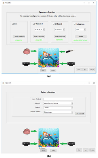 This proposal is designed to assist children with neurodevelopmental problems, but it is possible to use the present system to help any health professional to investigate several disorders or pathologies that require biomedical signal processing. Moreover, the system can be adapted to the specific needs of the research area, since it can grow or be modified and it is only limited to the capabilities of the local microprocessor. Specific sensors were designed to study what happens to a patient during a Dolphin-Assisted Therapy (DAT), but this work does not give conclusive information if it affects a patient in a positive way, for this it can be referred to [38,39]. To validate the proposed integrated system, it is used in a DAT in patients with Infantile Cerebral Palsy and Obsessive–Compulsive Disorder, as well as with a neurotypical one. A DAT is the interaction between a bottlenose dolphin (tursiops truncatus) with humans, affecting presumably in a positive way to the patient central nervous system by means of the dolphin echolocation.