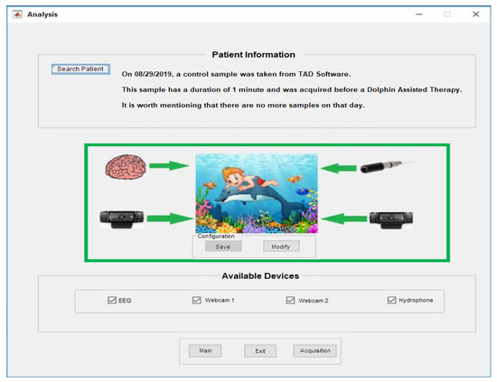 According to the above, the integrated system of Electroencephalographic, Electrocardiographic, Bioacoustic and Digital Image Acquisition Analysis provides neuroscience experts with tools to estimate the efficiency of a great variety of therapies. Our proposal is applied during a Dolphin-Assisted Therapy in a patient with Infantile Cerebral Palsy using the TAGM1, AD8232 BK type 3670 and Logitech-C920 sensors as well as the programming tools and toolboxes of Matlab R2019b, yielding the sampling stable and expected performance. Regarding the use and processing of the images recorded during therapy, these can be used to carry out an interactive video analysis of behavior or an analysis of micro-expressions. Hence, this system also provides work-tools to researchers in the field of artificial vision.