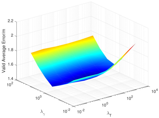 As you can see from Figure 12, in the EMDL algorithm, λ l and α both need to be set to a larger value to achieve better performance. This indicates that Laplacian regularization has improved performance and that the source domain data is of greater importance. As can be seen from Figure 13, the selection of λ T in the M. OT algorithm is more important than λ γ to the performance, but, in general, they have little impact on the positioning mean error.