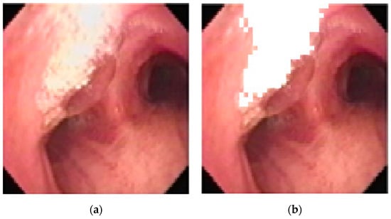 Removing areas of high reflectance from matching: (a) original (b) removed.