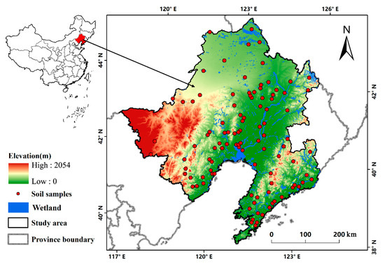 Location of the Liao River Basin (LRB) in China and the distribution of wetland and soil samples in the study area.