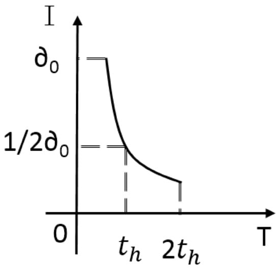 When the vehicle is stationary, it can be considered that the information flow can correctly reflect the node connectivity. Because the vehicle is moving, the change in the location of the vehicle will cause the node connectivity to change. Therefore, we introduce the self decay function to adapt to changes in topology. Previous valid forwarding data does not correctly reflect the current node connectivity, so the EIT needs self-reduction to ensure timeliness. We define the half-life time . In other words, if the node does not make effective transmission in time , EIT will become half of the original. For example, the initial information traffic is , and there is no effective data transmission from 0 to , then at the EIT is . Attenuation function can be obtained as below: