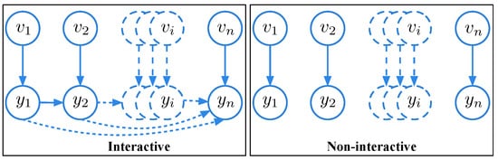 Let be the input sequences, and be the corresponding output sequences. As shown in left part of Figure 3, in interactive setting, the i-th output depends on the i-th input and the previous outputs , but is independent of the previous inputs . Particularly, the dependence and conditional independence correlations can be formally denoted as for any .