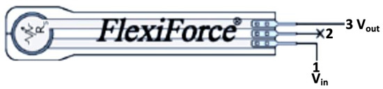 A resistive type pressure sensor (Flexi Force A201®) was selected to use in the SIFP system because of its flexibility and detection area, its simplicity of connection and its linearity in its range between 95% and 98%. The pin connection of the sensor is shown in Figure 5.