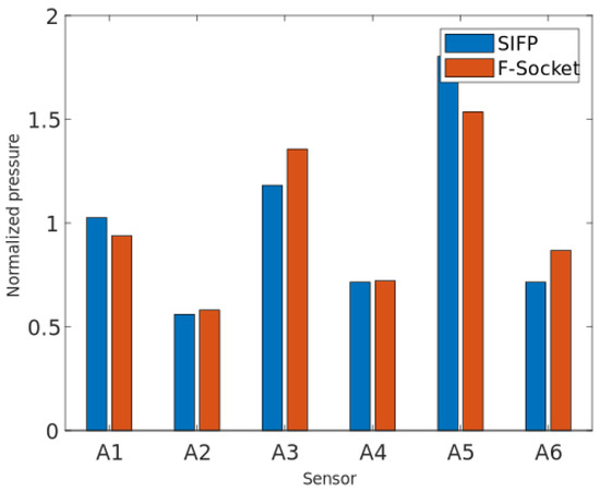 For the comparative test between the socket interface pressure (SIFP) device and the F-Socket, once the readings of all the iterations carried out were obtained, the pressures exerted on each sensor were filtered and analyzed.