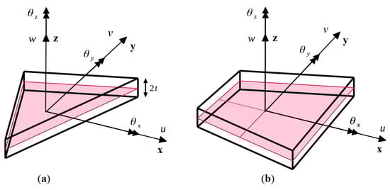 - Tessler, A.; Hughes, T.J.R. A three-node Mindlin plate element with improved transverse shear. Comput. Methods Appl. Mech. Eng. 1985, 50, 71–101. [Google Scholar] [CrossRef]