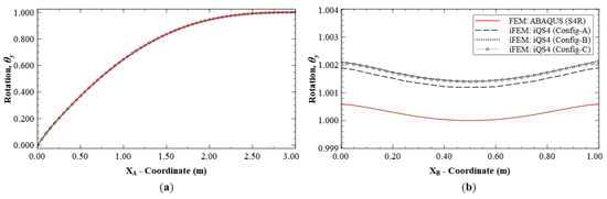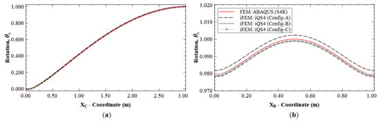 where the third rotation variable, , is a drilling DOF that represents the rotation about the -axis. The details of the displacement interpolations and the corresponding shape functions for both iMIN3 and iQS4 are summarized in Appendix A and Appendix B, respectively.