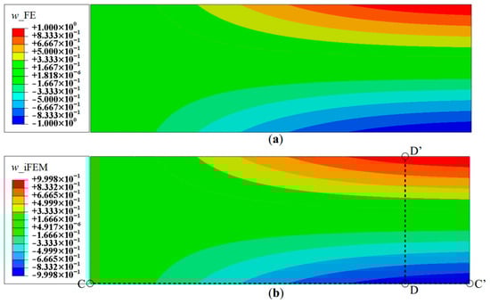 Contour plots of deflection for Mode 2: (a) FE results; and (b) iFEM results using full-field strain data (Configuration D).
