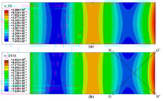 Line plots of deflection (w) for Mode 6 along: (a) section G-G′; and (b) section H-H′.