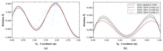 Line plots of rotation () for Mode 6 along; (a) section A-A′; and (b) section B-B′; (see Figure 5b for the section definition).