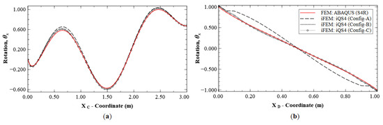 Line plots of rotation () for Mode 6 along; (a) section C-C′; and (b) section D-D′; (see Figure 8b for the section definition).